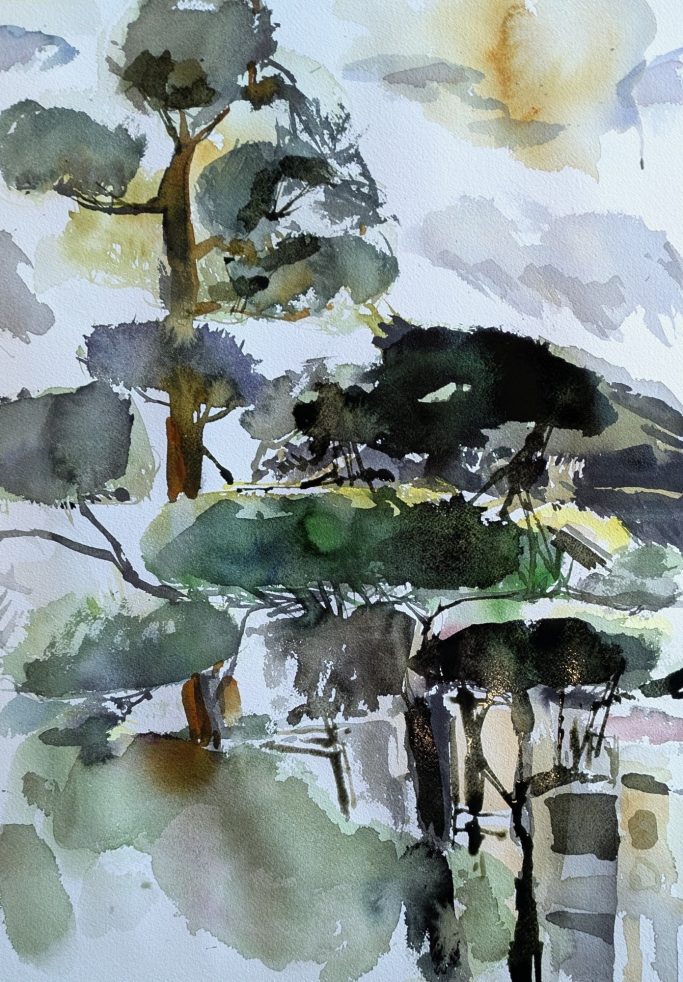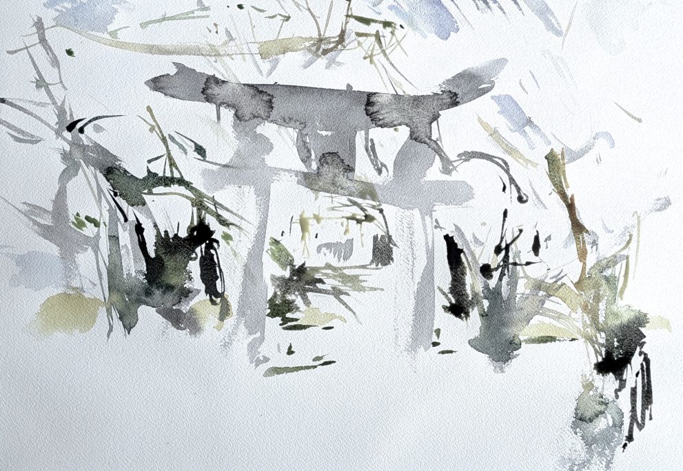 In my watercolors, I focus intensely on the interplay between Ma and Kami. In Japanese aesthetics, Ma (間) is much more than just a gap. It is the creative space in between, the conscious pause that gives things their meaning. In this silence, the Kami (神) reveal themselves. They are the whispering soul of nature, the power of ancient stone and the spirit that watches over the forests around the temples.